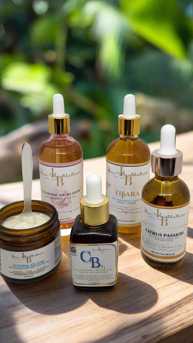 At the heart of our brand are our foundational body oils, hand-crafted and formulated with the finest natural ingredients to moisturize, restore, and nourish your skins radiance. From our sumptuous face, hair, and skin oils to our "coming soon" products like decadent body butters and invigorating body scrubs, our curated selection of natural and vegan makeup, each creation being a testament to our commitment to quality, authenticity, and your skin's well-being. Our creams, soaps, and healing modalities will not only tantalize the senses with their exquisite fragrances but also work tirelessly to hydrate and repair damaged skin, revealing your natural radiance with every use.